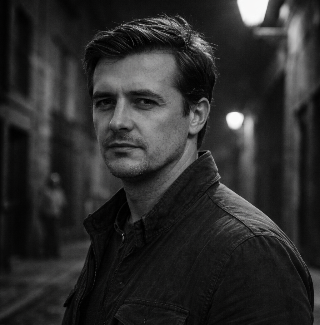 Jack Bengar Brown nació en 1977 en una pequeña aldea costera del oeste de Irlanda, un lugar de acantilados ásperos y cielos cambiantes donde, según él mismo afirma, aprendió que los silencios también cuentan historias. Aquella geografía moldeó su sensibilidad narrativa, tan atenta al paisaje como a las fisuras del alma humana.